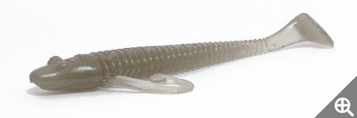 ボディに刻まれた細かなリブと、大きなヒレ・テールが水を良く掴み、僅かな水流にも反応して繊細に動きます。またノンソルト素材と相まって生みだされる高い浮力と、平たい形状によって生み出される安定したスイミング姿勢は、ゆっくり見せて誘いたいシチュエーションや、広範囲を長く探りたいシチュエーションに最適です。更に、ベイトの匂いを再現するフォーミュラーパウダーを内蔵し、バスの嗅覚にも訴えます。