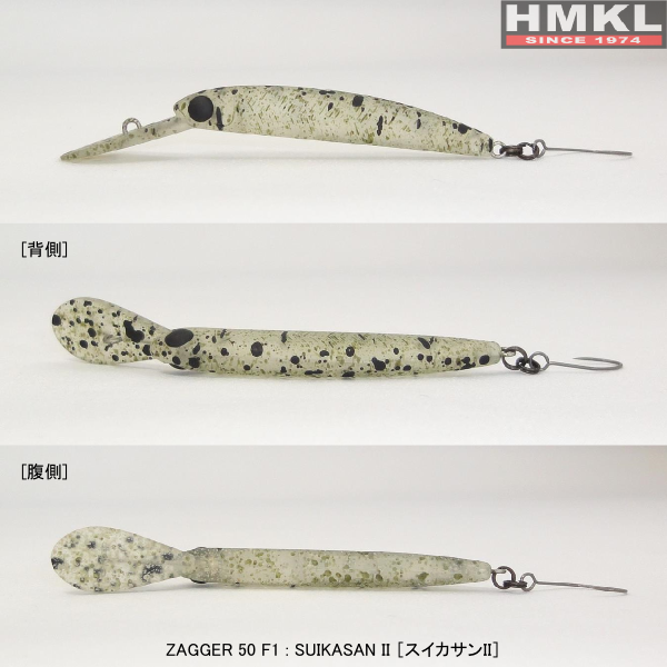 ZAGGER 50 F1は、一定のリズムでジャーク(あるいはトゥイッチ)とポーズを反復することによって生み出される垂直方向のジグザグの動きでバイトを誘うミノーです。このアクションをブラッシュアップすべく、追求したのは「浮力」でした。ポーズ時に少しでも素早く浮上しトラウトの注意を惹くため、潔くベリーフックを排し、可能な限りの軽量化を試みています。
